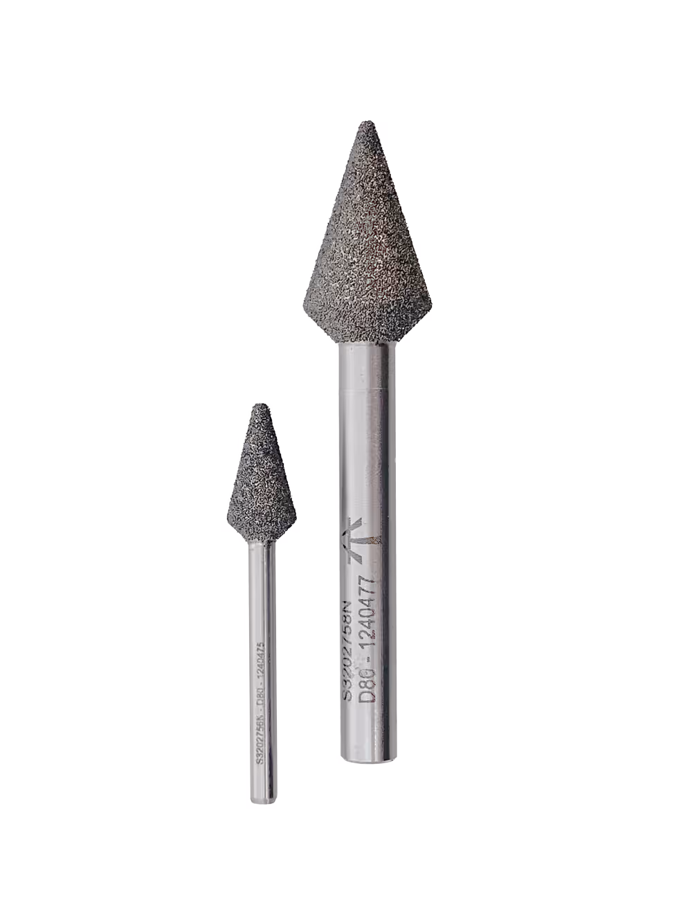 For applications including deburring, milling, chamfering and more. Available in both P.B.S.® Braze and Electroplated bonds, diamond burs hold their shape with no redressing required. Ideal for work on composites, ceramics and alloy steels.